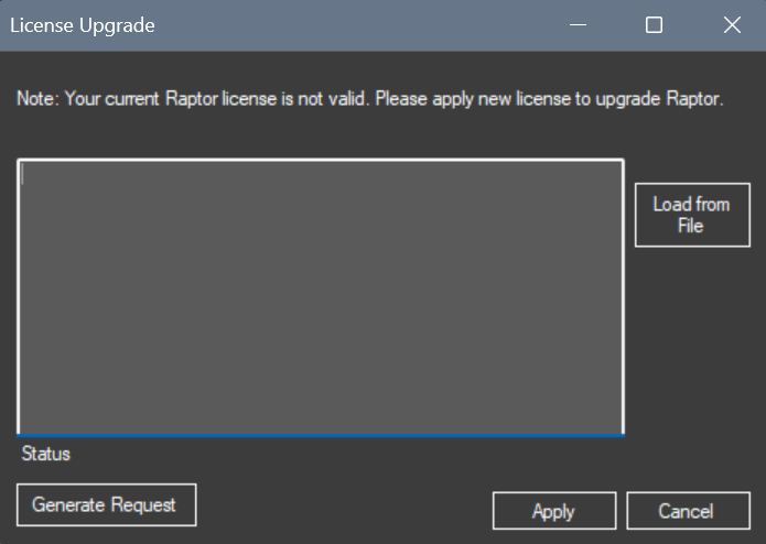- When you open up Raptor, it should prompt the license window or say that the license is invalid like so: